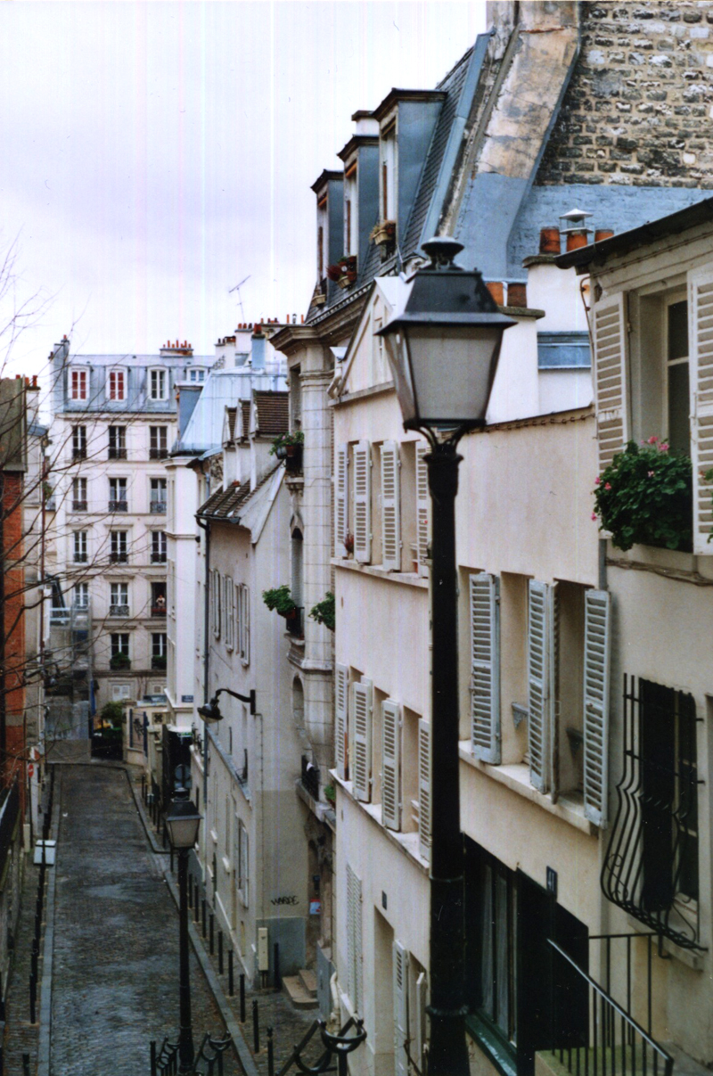 Allez, une petite énumération de ce qui me manquerait si je quittais cette ville, ce pays : les sens interdits qui ne sont pas vraiment interdits, les gens qui grignotent le bout de leur baguette en rentrant à la maison le soir (je le remarque très souvent et je ne sais pas pourquoi, ça me charme), les voitures stationnées en tête à tête d’un même côté de la rue, le “bonjour” qu’on vous adresse dans l’ascenseur ou en entrant dans un café, les marchés où l’on peut demander une pêche ou n’importe quel fruit en indiquant le dégré de mûrissement voulu au jour près: “pour aujourd’hui” ou “pour demain” ou “pour mercredi”, les pépés qui sirotent leur verre de blanc à 10 h 30 du matin accoudés au zinc du bar-pmu du coin en discutant de tout et rien, la couleur chaude des immeubles haussmaniens crèmes à la tombée du jour, la lenteur et la générosité des soupers, les Picards royaumes du surgelé (est-ce par nostalgie de l’hiver ?), l’habit noir et blanc des garçons de café, les petites dames coquettes au marché Jeanne d’Arc le dimanche, le héron libre du Jardin des plantes, le thé et les gâteaux de la Grande mosquée, les marchands de perruques africains et leurs vitrines troublantes, les manifestations bigarrées, le dôme laiteux du siège du parti Communiste, l’horloge de la gare de Lyon, l’atmosphère de la rive droite, et j’en passe.
