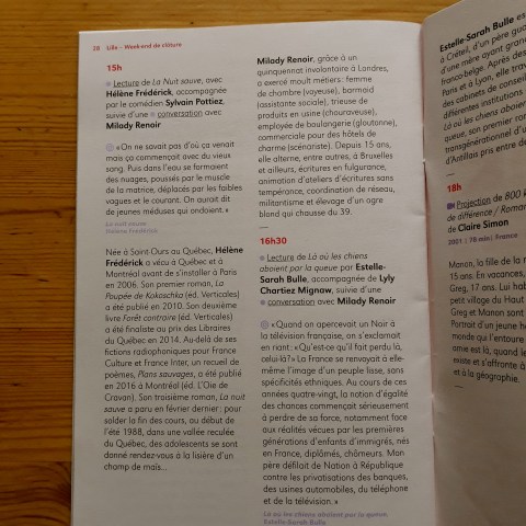Puis on se retrouve à Lille le dimanche 20 octobre (15 heures), lors du week-end de clôture du festival, pour une lecture de La Nuit sauve. Je serai accompagnée par le comédien Sylvain Pottiez (mise en scène Fanny Bayard). Une discussion avec Milady Renoir suivra.