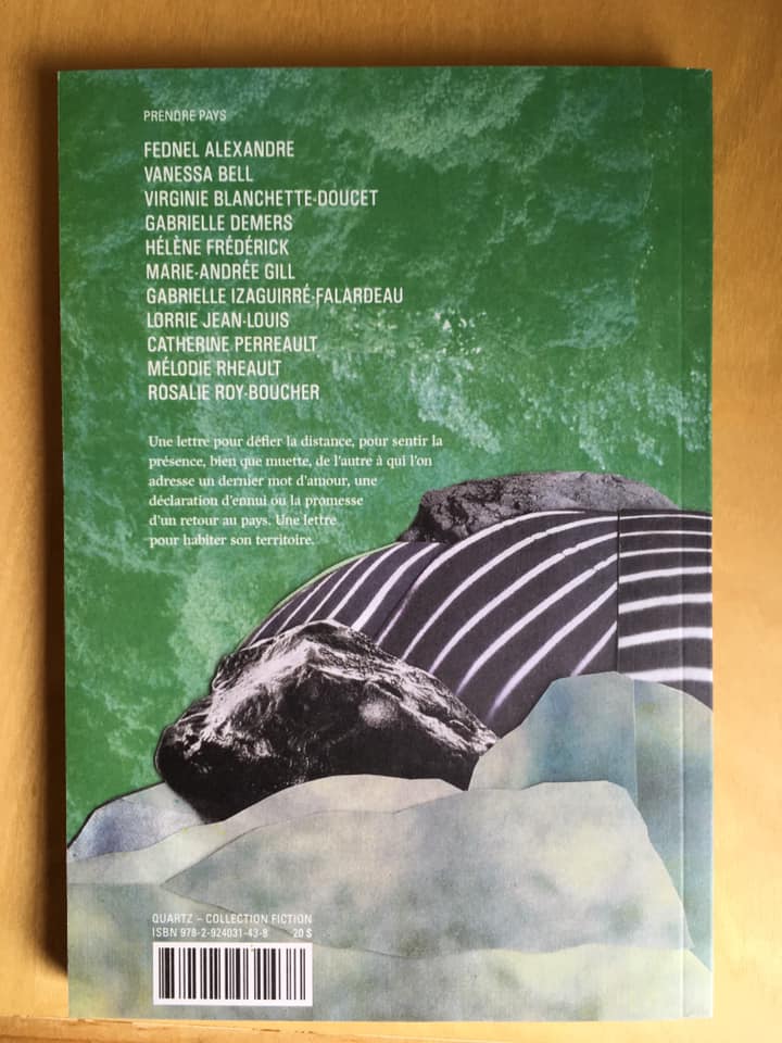 Le 10 août paraissait au Québec l’ouvrage collectif Prendre pays, aux éditions du Quartz, auquel j’ai contribué avec En trois lettres, un texte adressé à Kyo et aux amours perdus.
