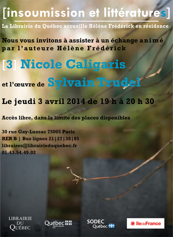 le jeudi 6 mars à la Librairie du Québec (Paris 5e)